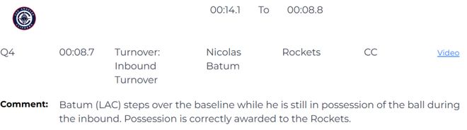 裁判报告指出,这本该是一次进攻犯规,进球应该无效,这次漏判显然是快船吃亏,火箭获利。