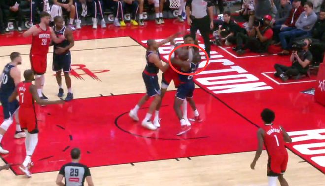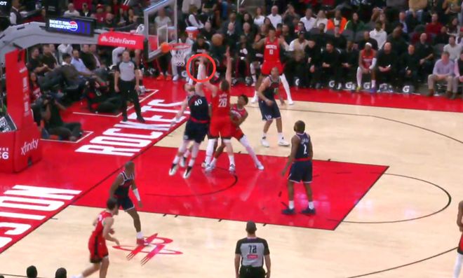 最后两分钟的唯一一次漏判,出现在距离比赛结束还有1分43秒。当时,火箭队的申京在进攻时,将左臂伸到了快船队祖巴茨垂直举起的手臂上,主动制造了身体接触,影响了祖巴茨防守投篮的动作。申京进球后,祖巴茨曾用手势示意申京犯规,但裁判没有理会。